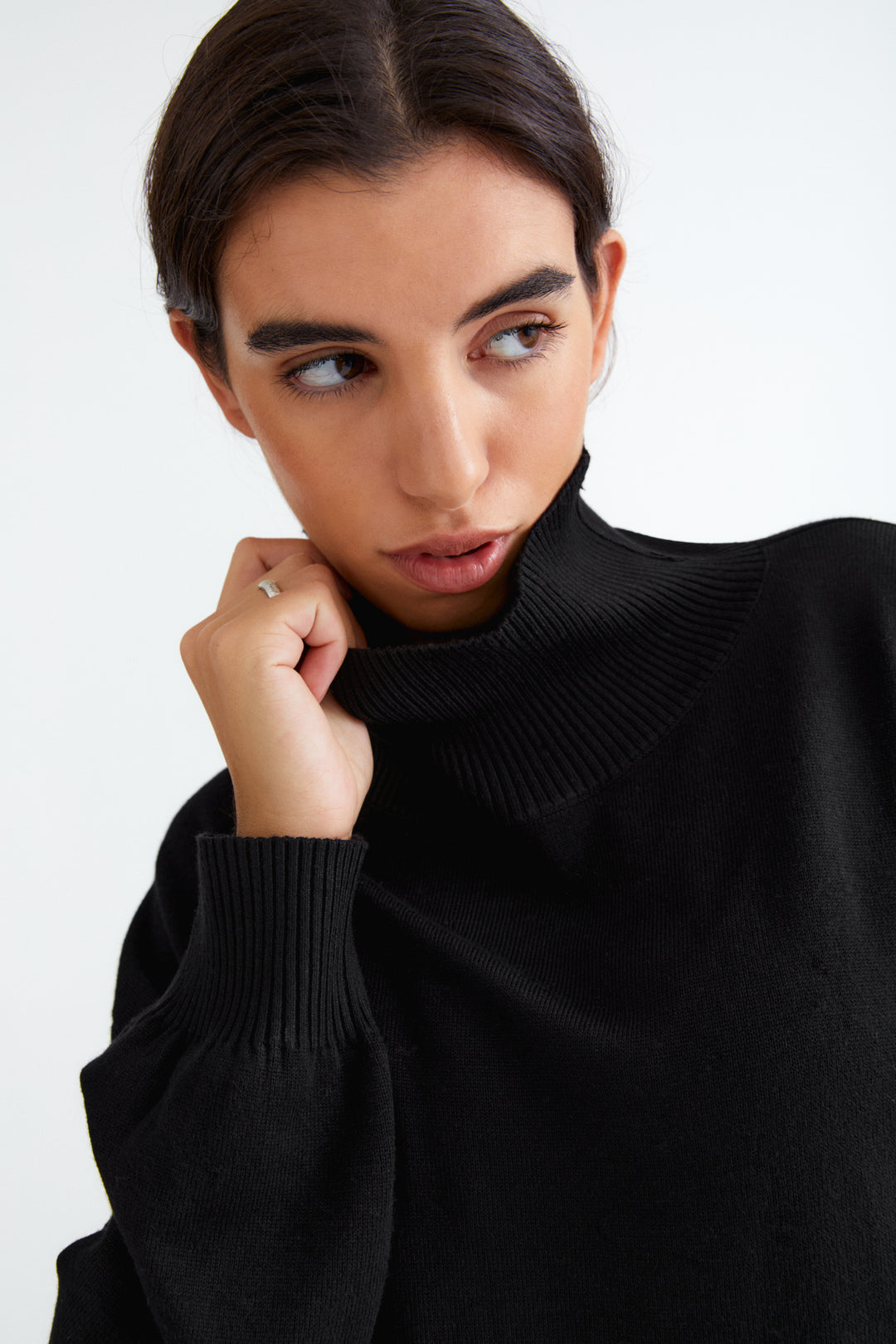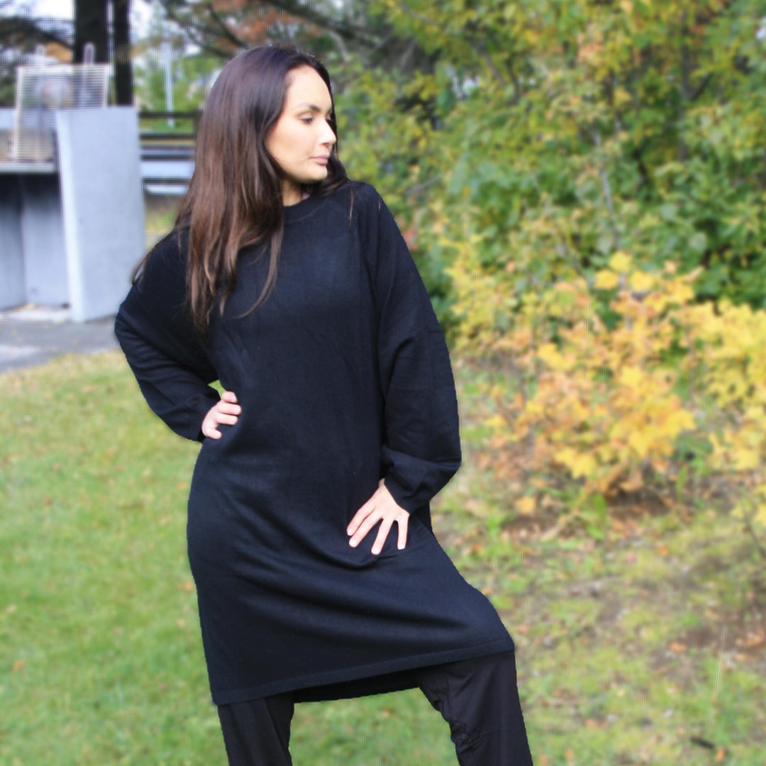 Þunn prjónuð hettupeysa svört- 30% afsláttur