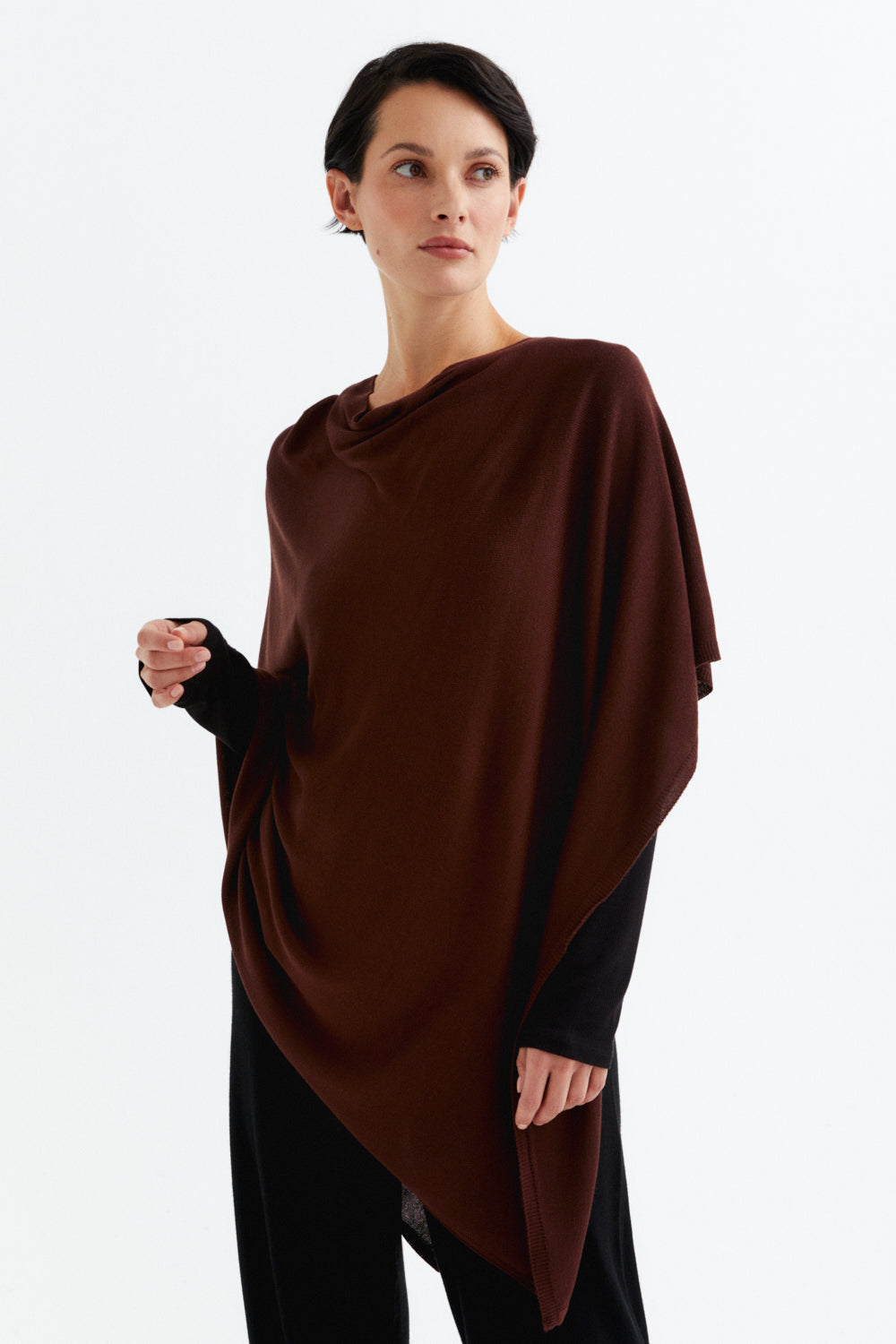 Þunnprjónað Poncho Dökkbrúnt - Ein stærð
