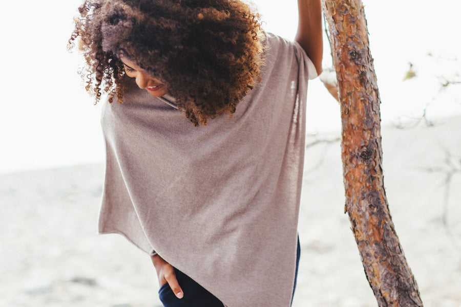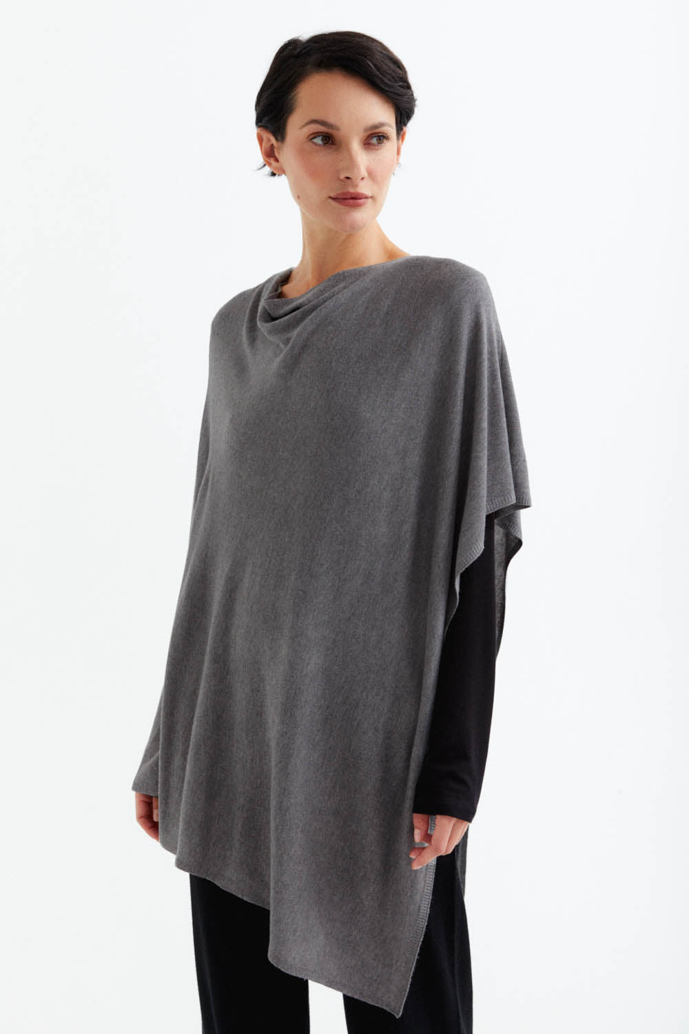 Þunnprjónað Poncho steingrátt - Ein stærð