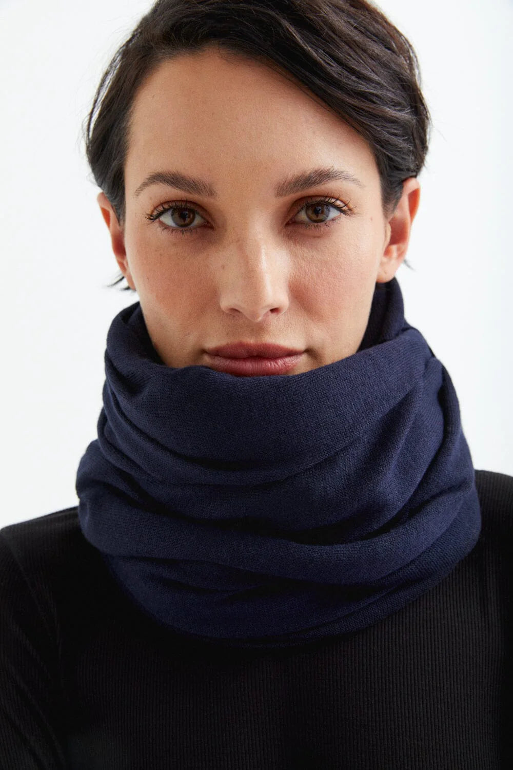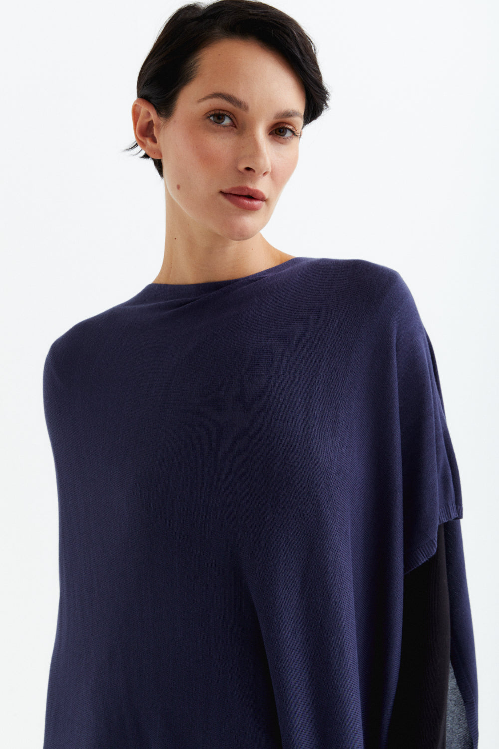 Þunnprjónað Poncho dökkblátt - Ein stærð