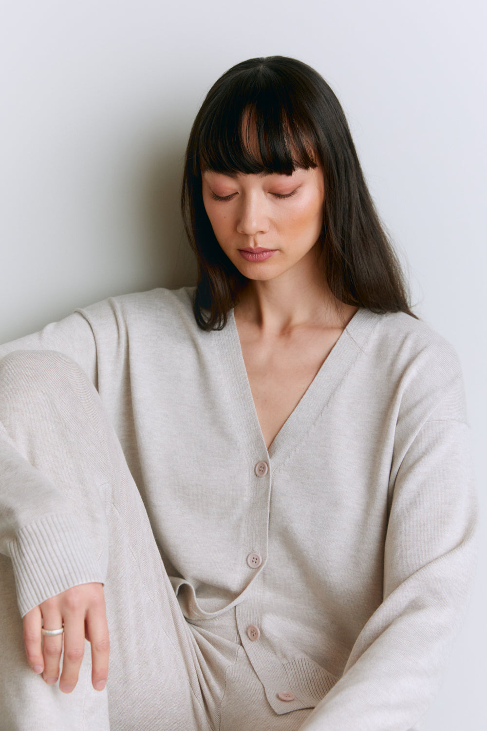 Þunn prjónuð hneppt peysa úr bambus og cashmereblöndu. Létt og mjúk úr náttúrulegu efni sem andar. Þessi peysa er mjög þægileg og hægt að dressa upp og niður, fyrir vinnuna, heimakósý og hentar vel í útiveru. Cashmere og bambus er góð blanda fyrir viðkvæma húð, dúnmjúk og umhverfisvæn.