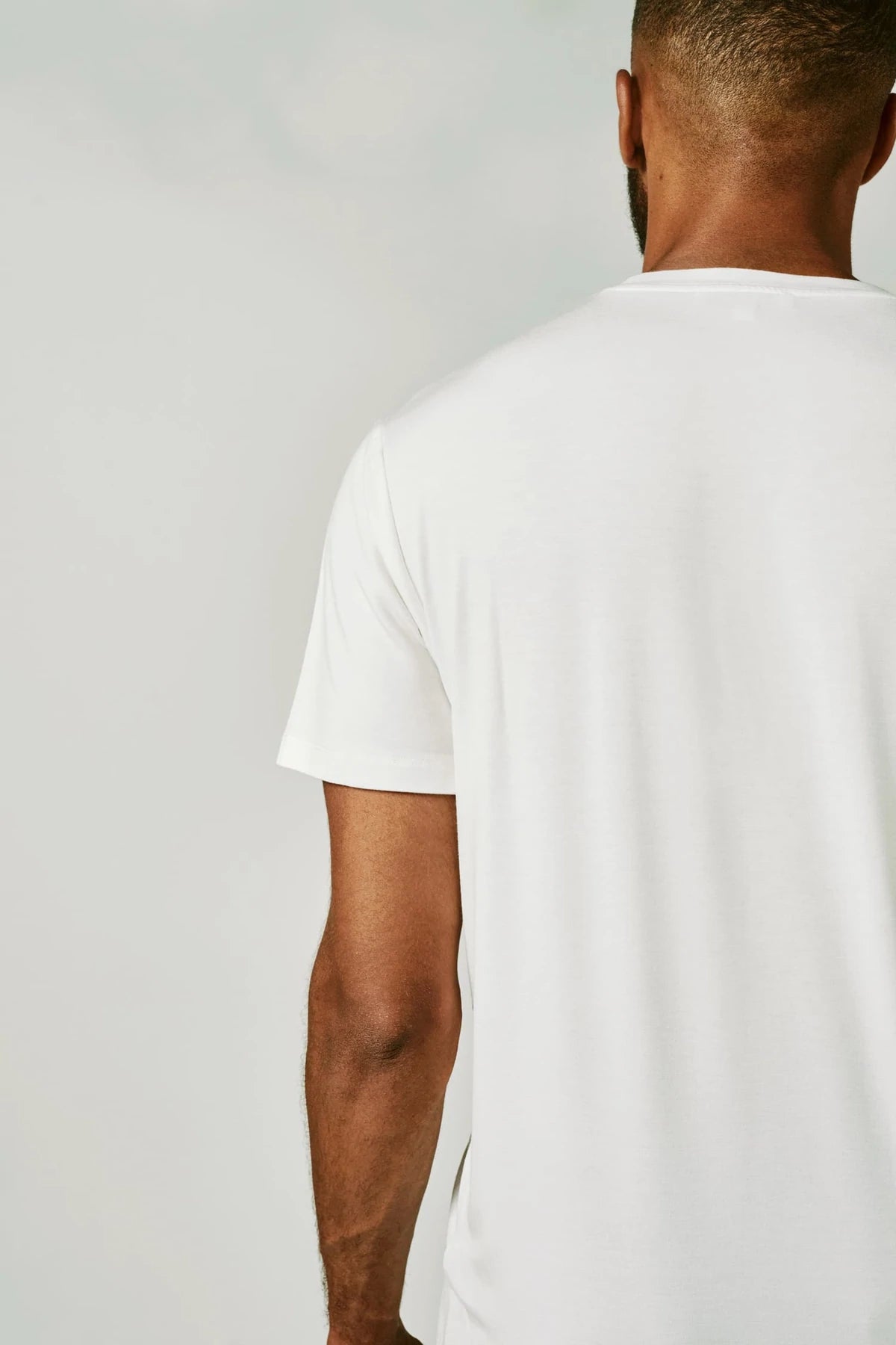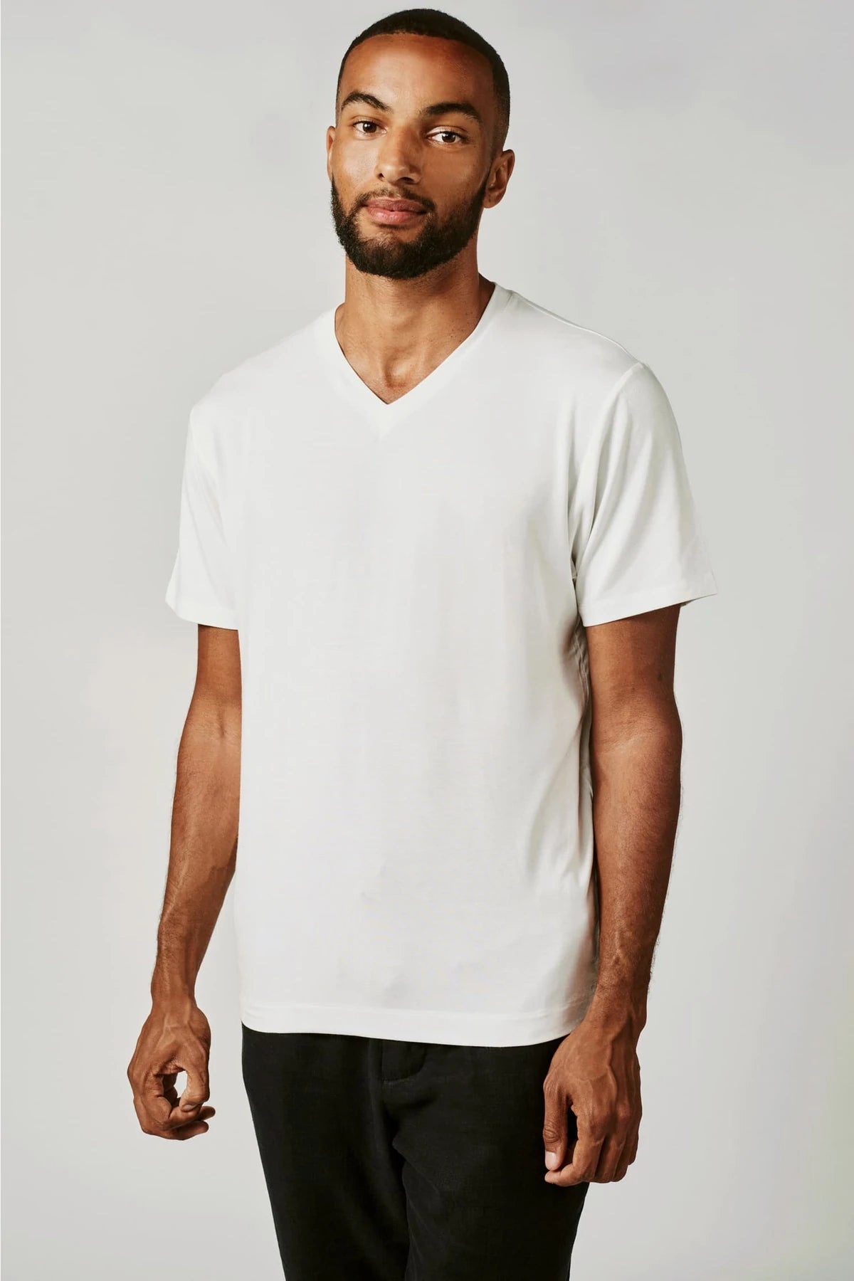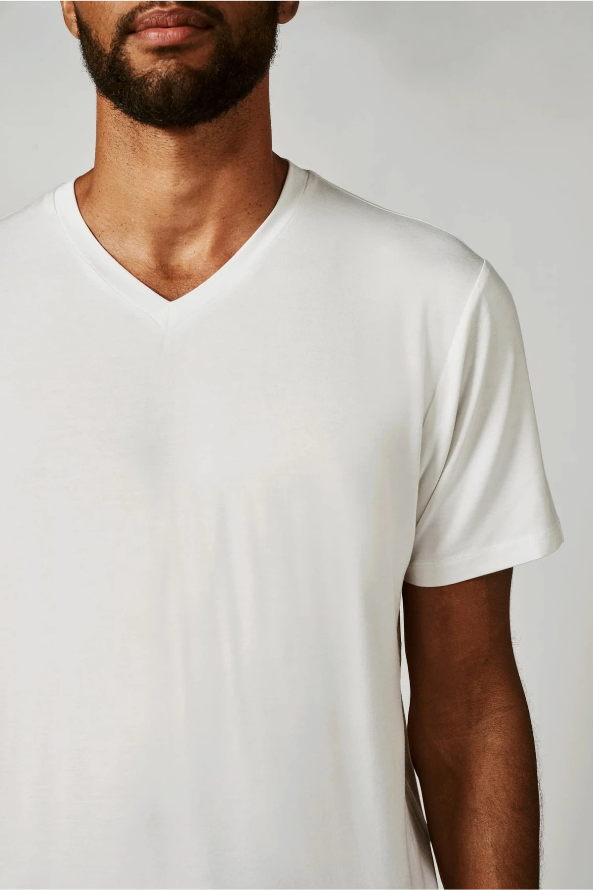 Ótrúlega þægilegur klassískur stuttermabolur. Beint snið og V-hálsmál, gerður úr mjúku bambus lyocell efni með stuttum ermum. Fullkomin grunnflík úr léttu og dúnmjúku efni. Ávinningurinn af því að nota bambus felur í sér upplifun af öndunarfatnaði sem hefur bakteríudrepandi eiginleika og er umhverfisvænt.