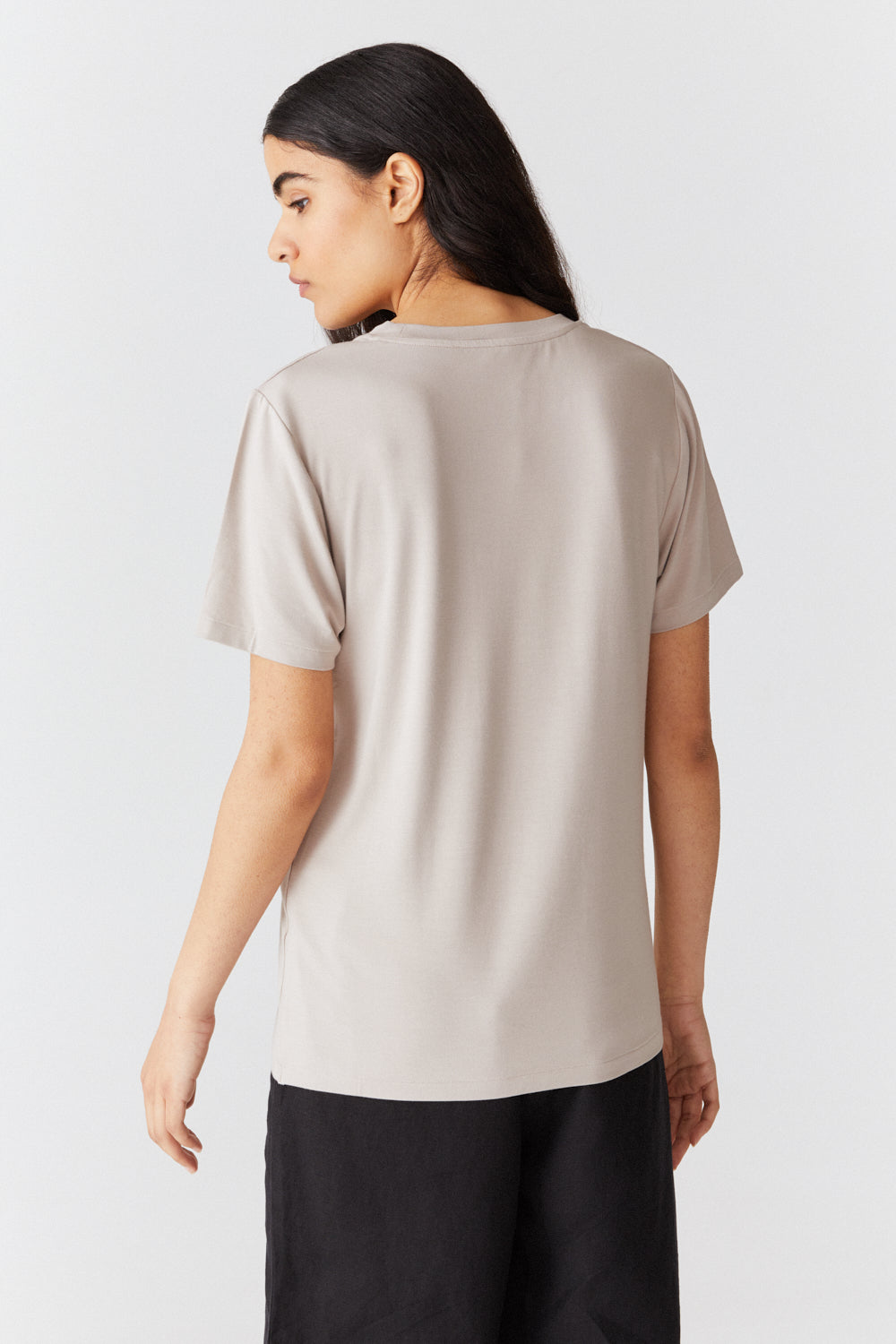 Þægilegur klassískur stuttermabolur með beinu sniði og hringlaga hálsmáli. Úr dúnmjúku bambus lyocell efni sem andar frá sér, er bakteríudrepandi og framleitt á umhverfisvænan hátt.