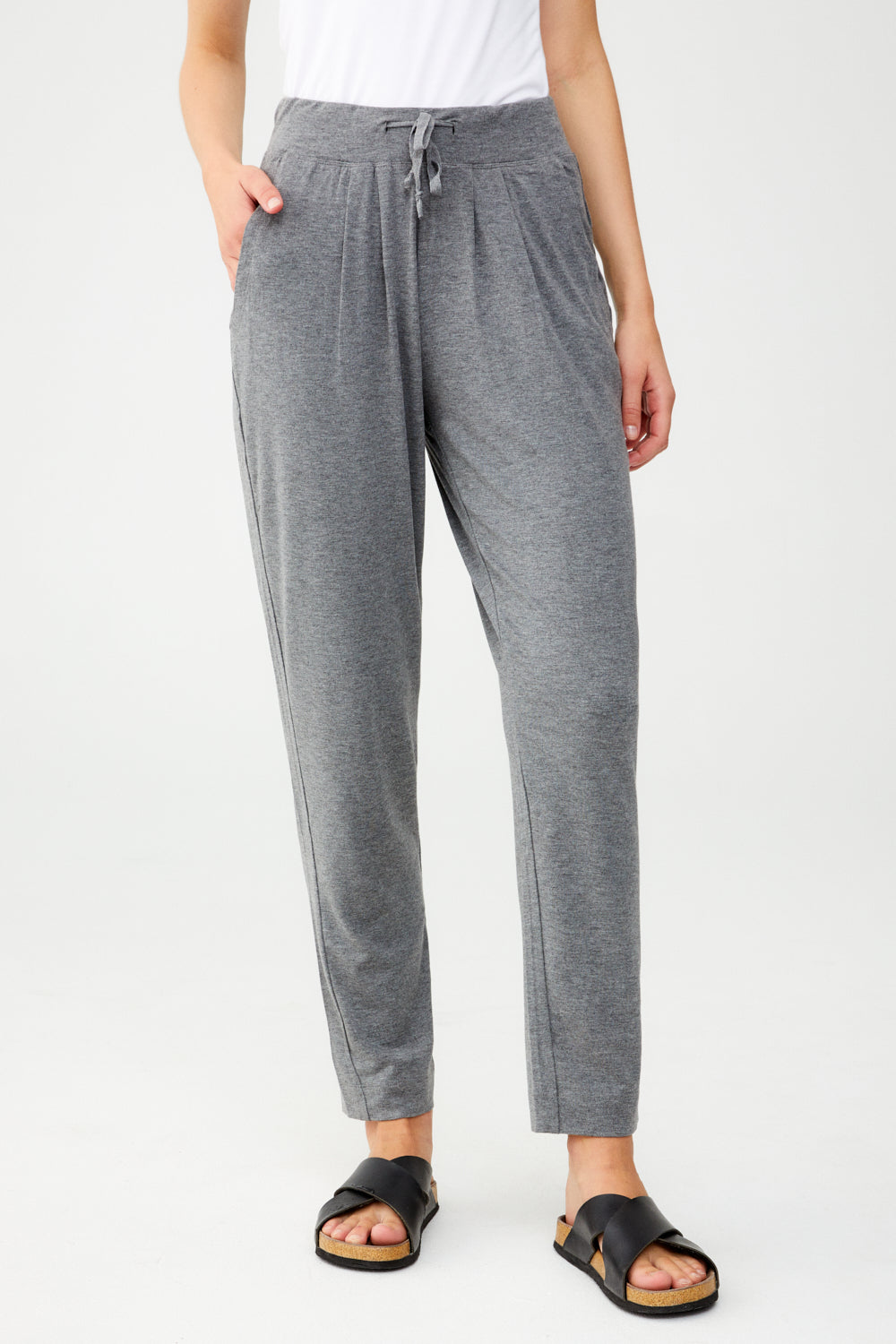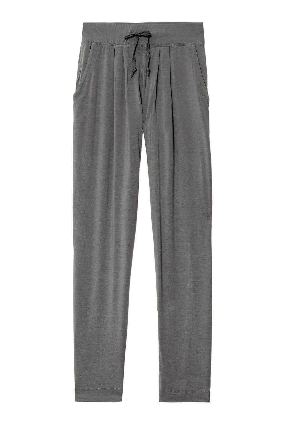 Kósý buxur, sniðnar niðurþröngar með vösum á hlið og bundnar í mitti úr mjúku Bambus lyocell efni. Fullkomnar heimabuxur sem nota má hvort heldur sem spari eða hversdags. Bambusefnið er dúnmjúkt, andar og hefur bakteríudrepandi eiginleika.