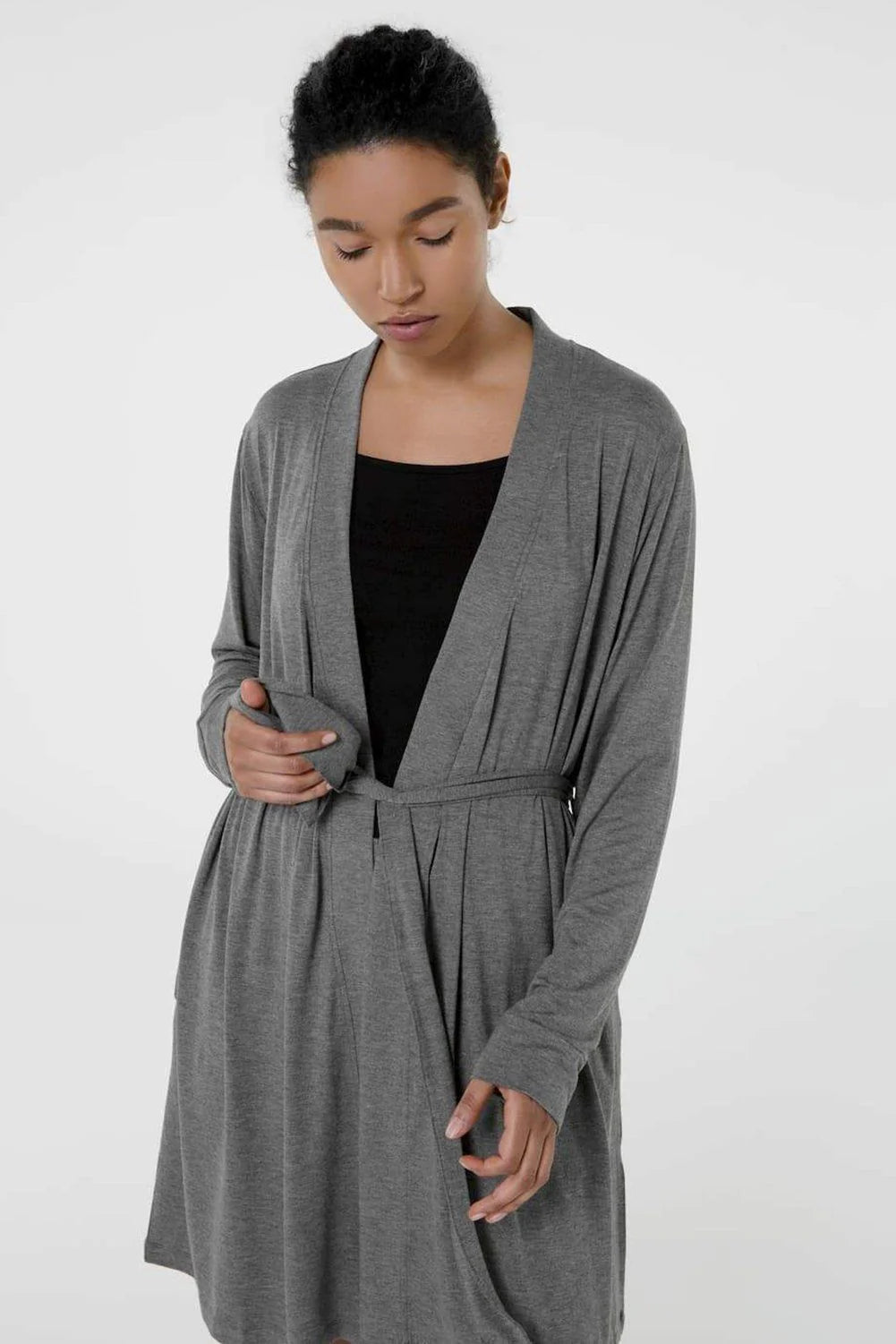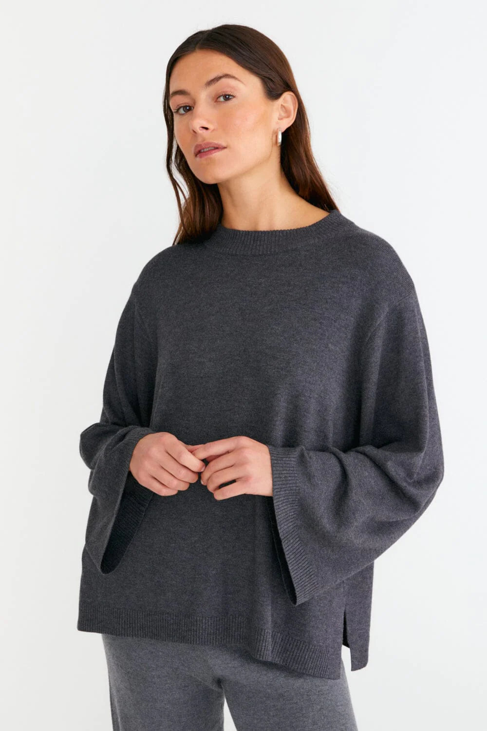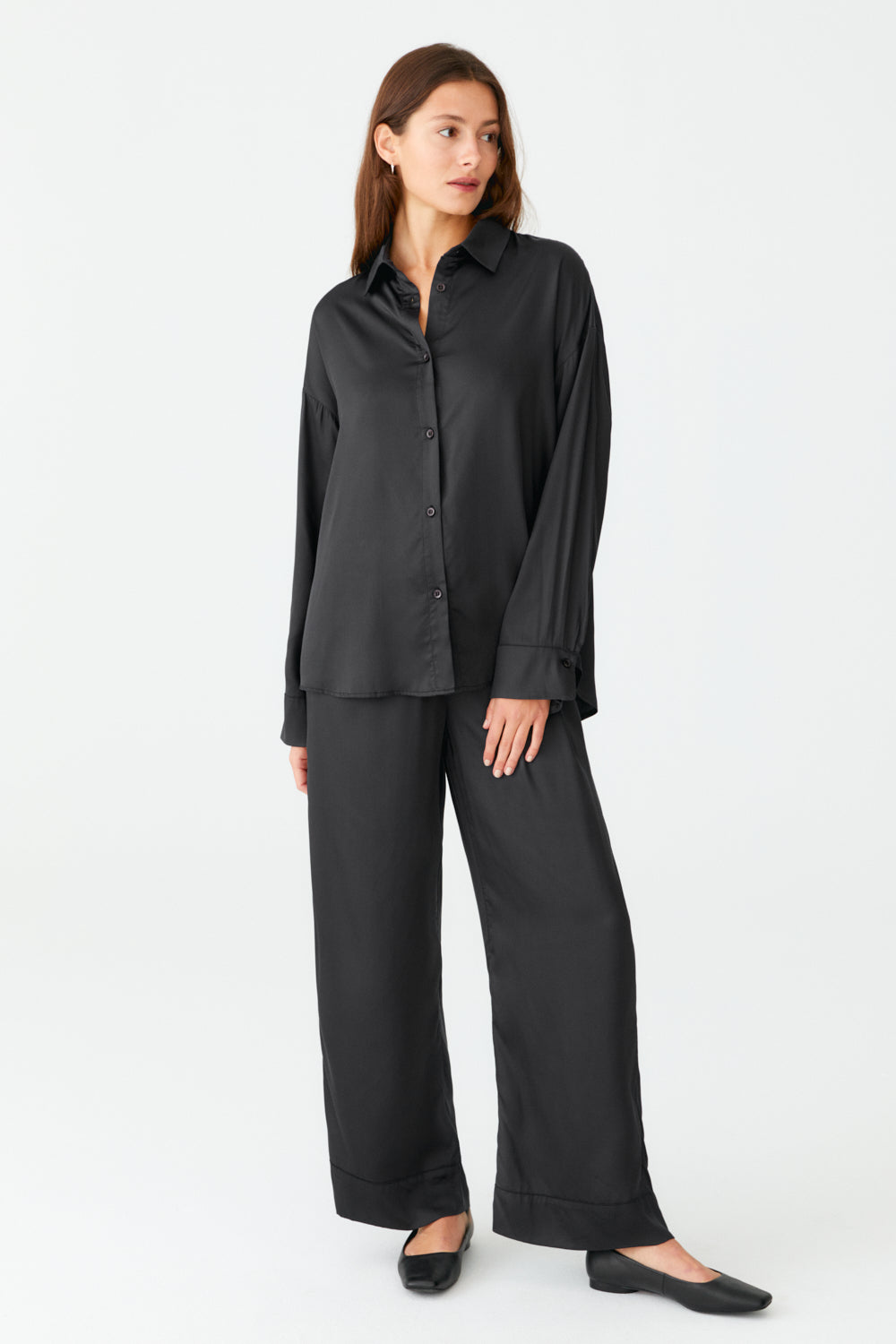 Víðar silkimjúkar buxur dökkgráar- 30% afsláttur